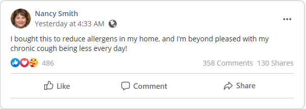 The next morning – let me tell you — I woke up to the cleanest, most crisp air I’ve ever smelled or breathed in our house. Most important: ZERO allergy symptoms. No headache, no irritated eyes... not so much as a single sniff.
